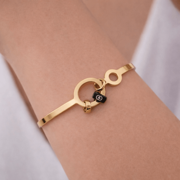 Dual Circle Charm Gold Plated Bracelet /Kada