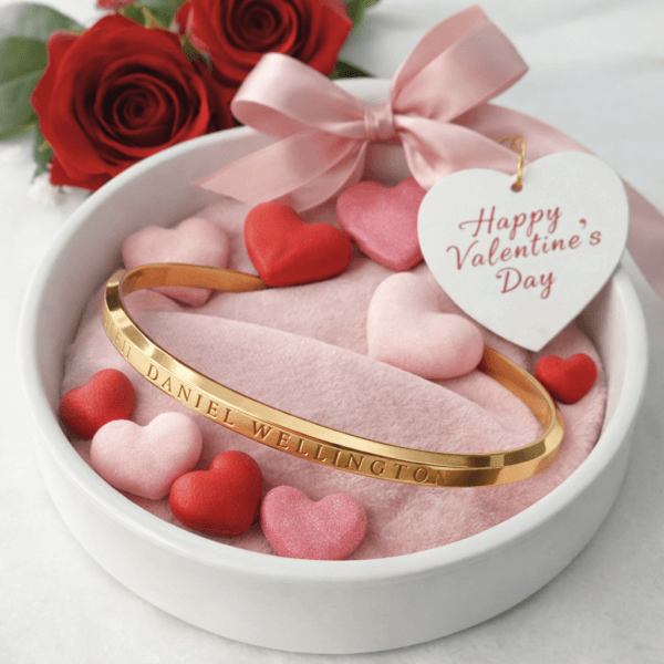 DANIEL WELLINGTON Luxury Polished Gold Plated Timeless Style Open Cuff Bracelet