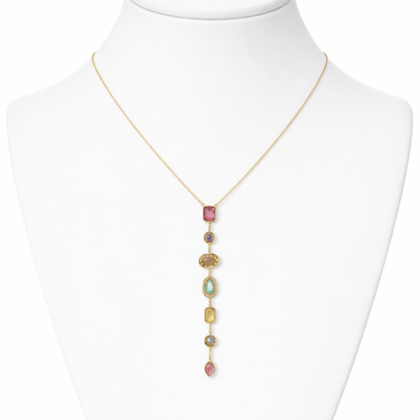 Party Wear Gold Plated Multi-Stone Drop Necklace