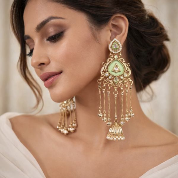 Aarohi Green Stone Long Kashmiri Jhumkas