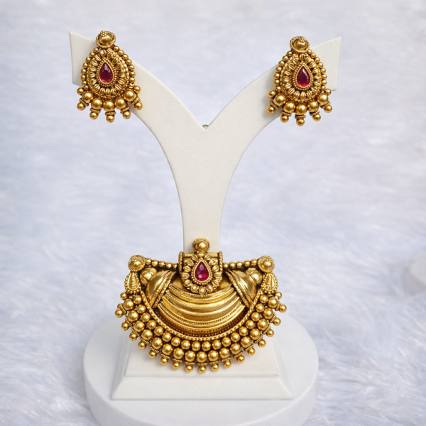Heritage Gold Plated Kundan Pendent and Stud Earrings