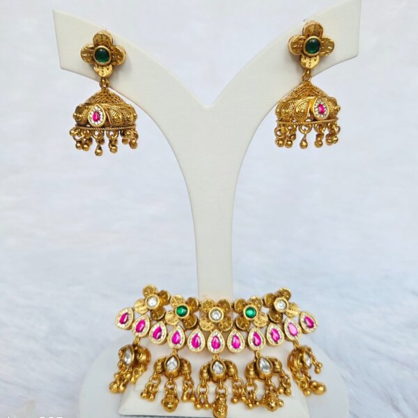 Traditional Gold Plated Kundan Pendant Set with Jhumki Earrings