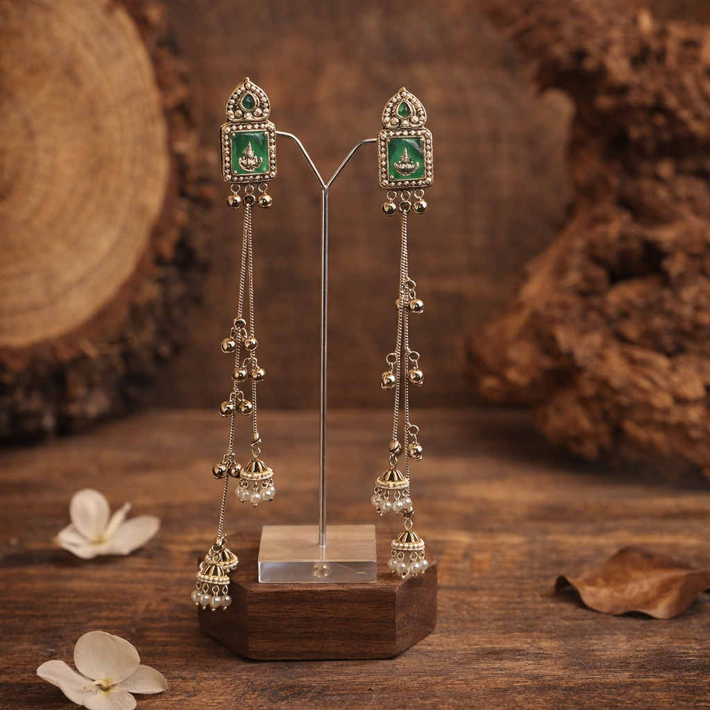 Aarohi Green Stone Long Kashmiri Jhumkas
