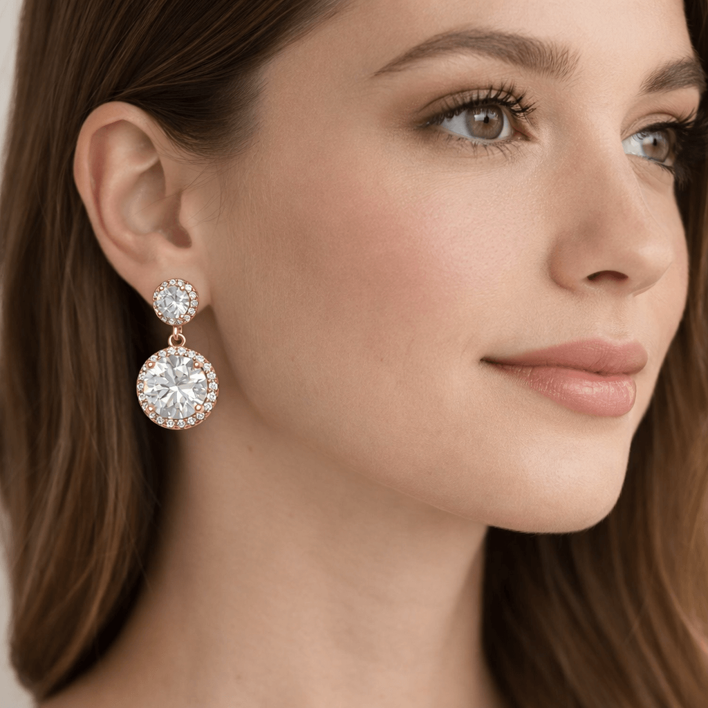 Celeste Double CZ Dangle Rose Gold Plated Earrings