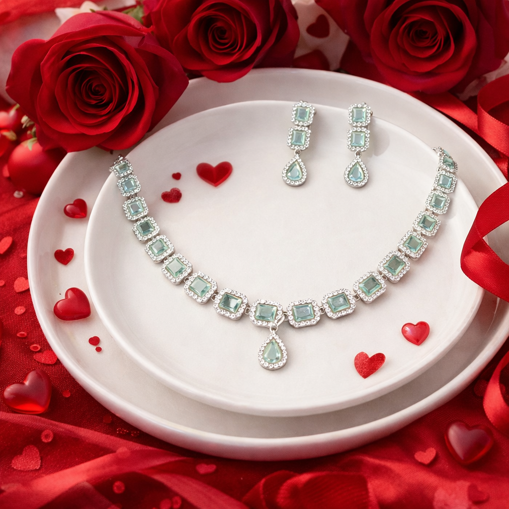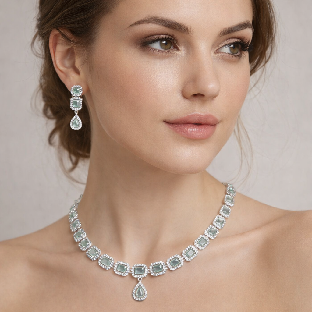 Celestia Mint Crystal Necklace Set