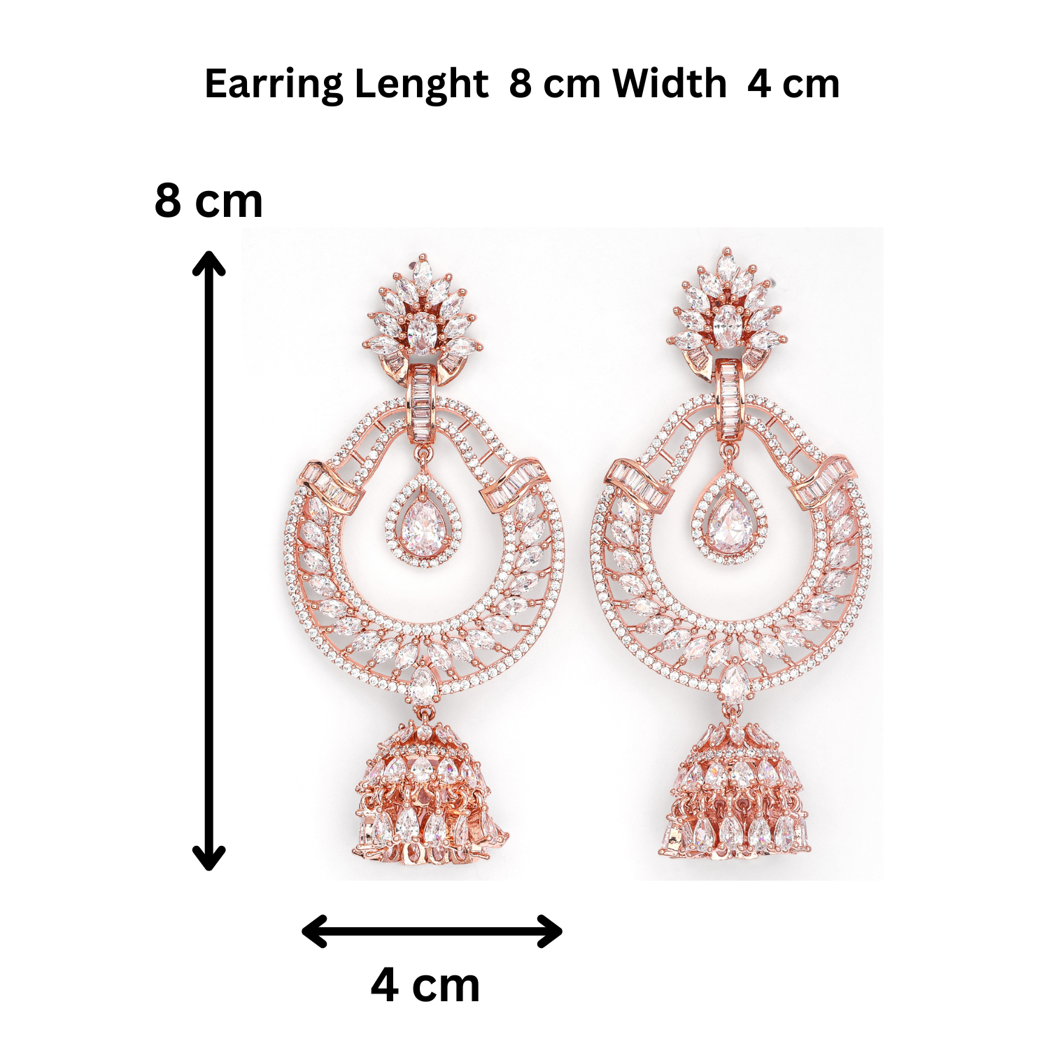 This Earrings made of brass metal with rose gold finished, Crafted with a high-quality finish American diamond.