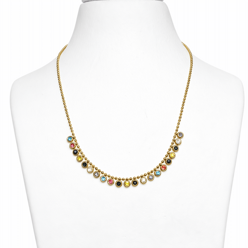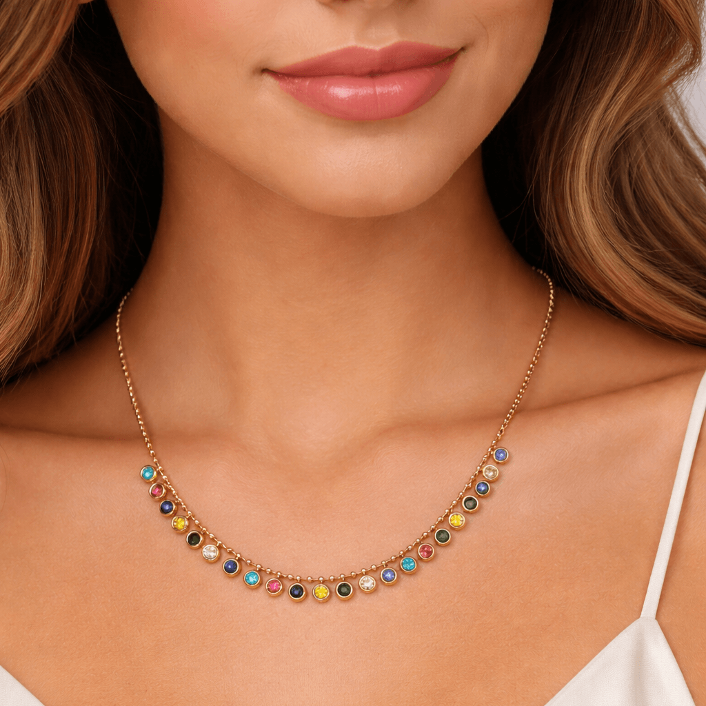 Classic Gold-Plated Colorful Stone Necklace | Elegant Short Necklace