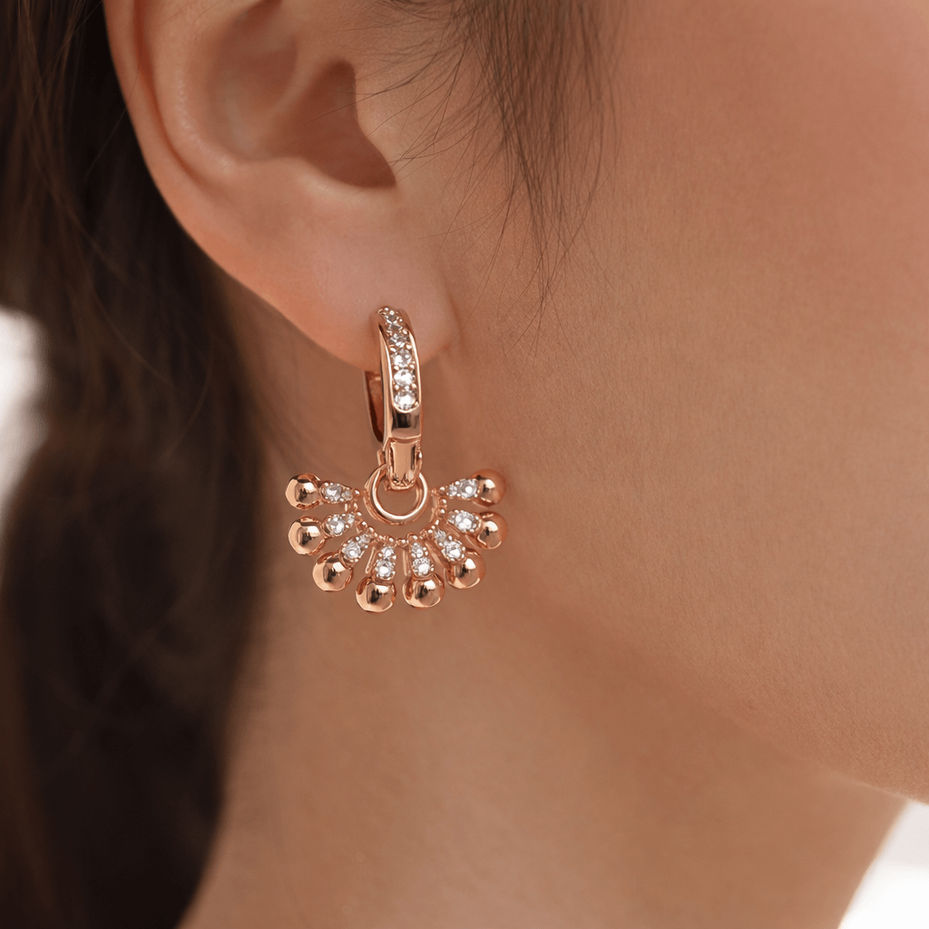 Detachable Rose Gold PLated Crystal Charm Hoop Earrings