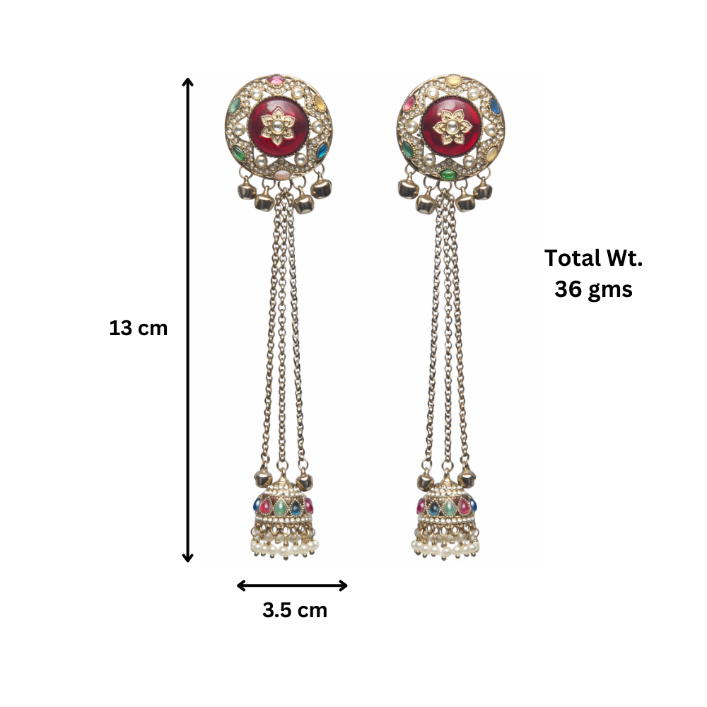 Royal Kundan Design: Features a rich red center stone with multicolor Kundan detailing for a regal ethnic look