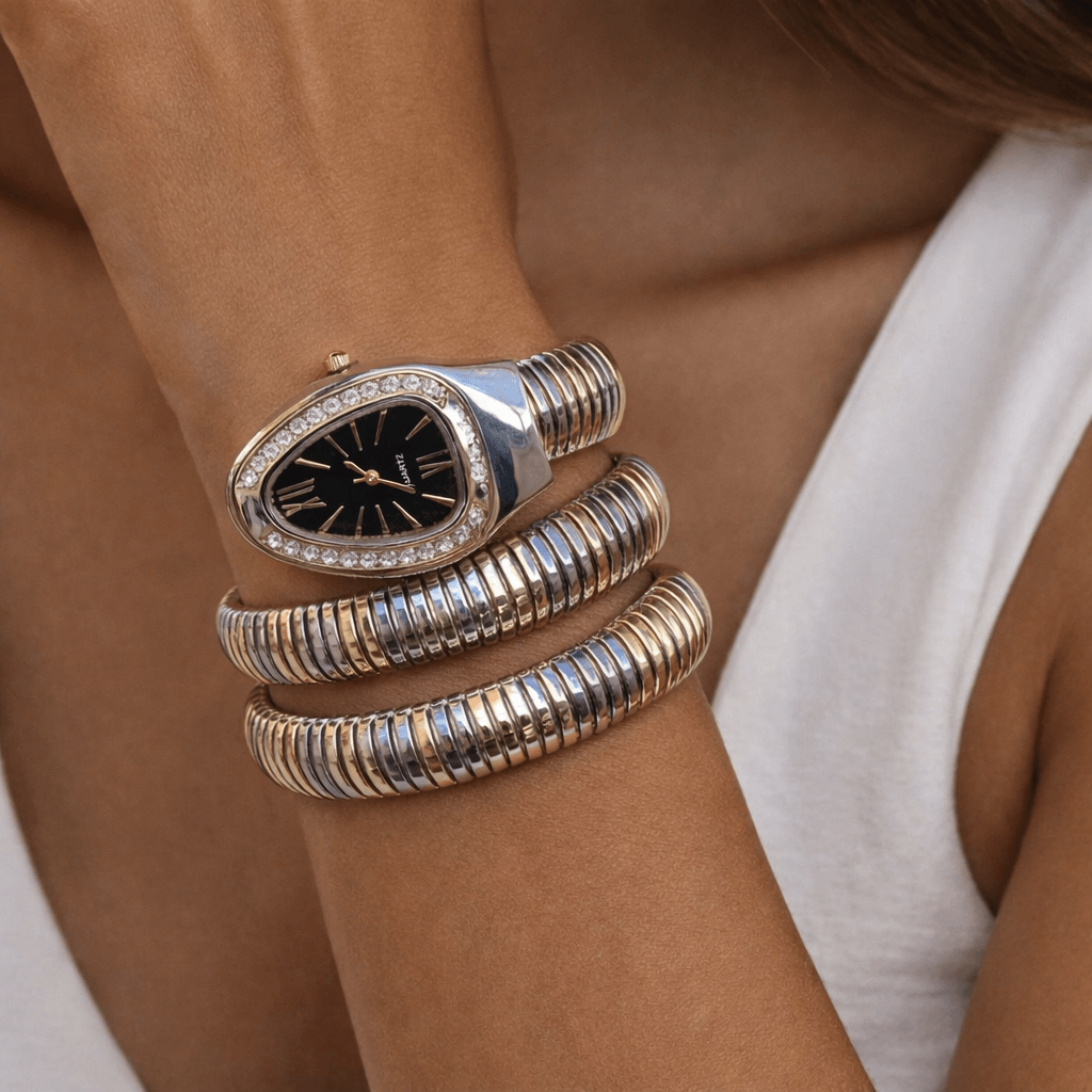 Stylish Coil Bracelet Design Snake-style wrap bracelet that looks like jewelry and a watch in one