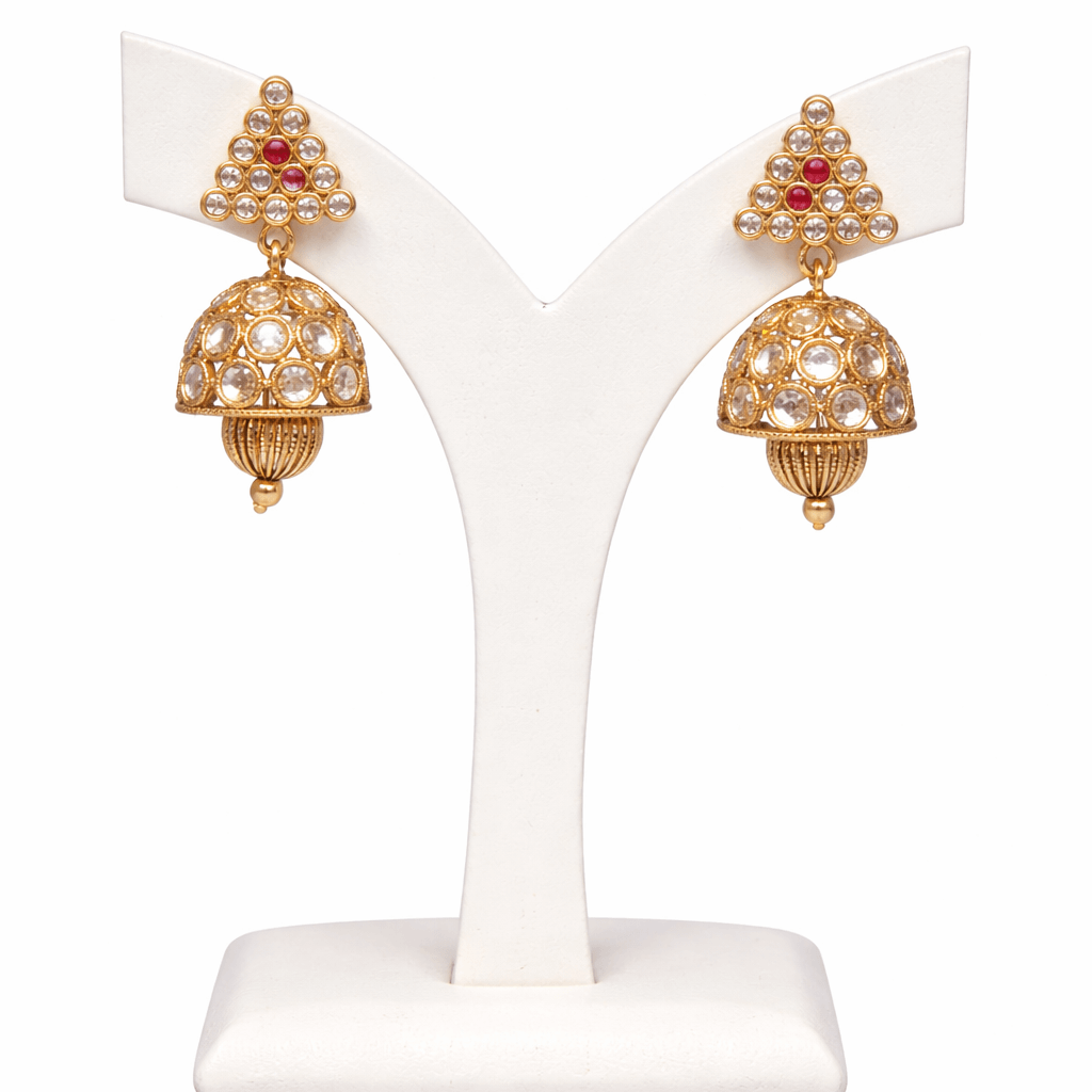 Matching Jhumka Earrings: Comes with beautifully crafted jhumka earrings featuring stone detailing and gold bead drops.