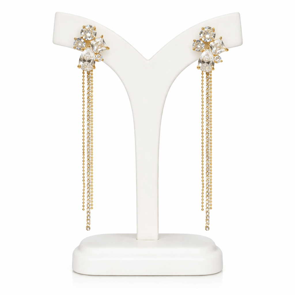 Elegant Tassel Drop Fine gold-tone chain tassels add graceful movement