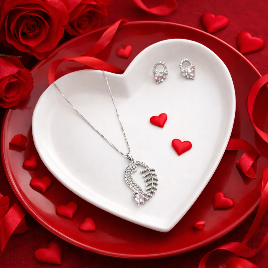 Matching Pendant & Earrings: Coordinated necklace and stud earrings for a complete, polished look