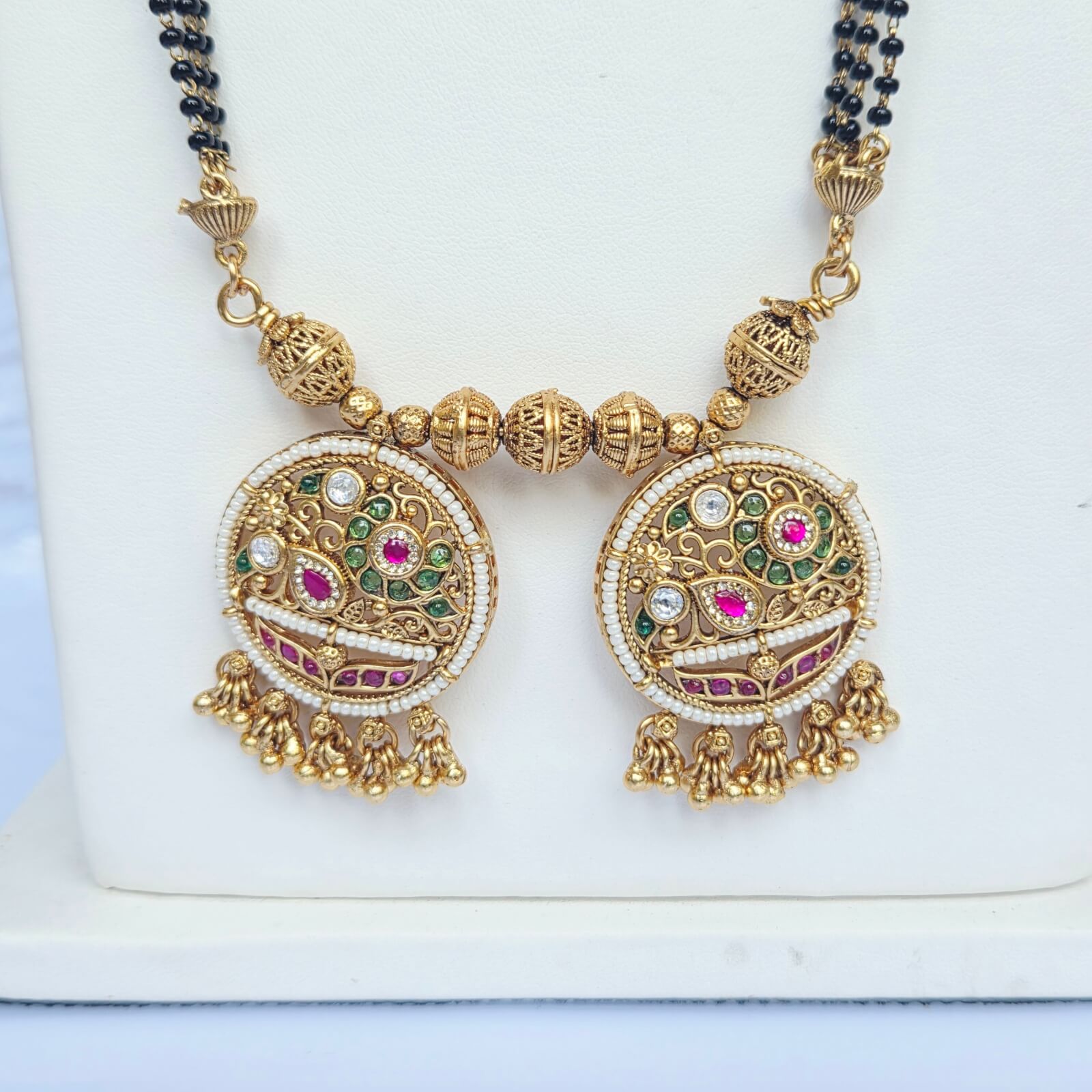 Golden, Traditional Black Beads, Multicolor Stones with Pearl Work