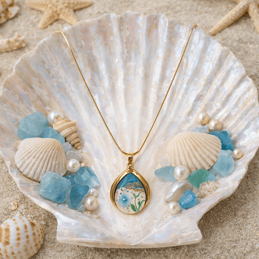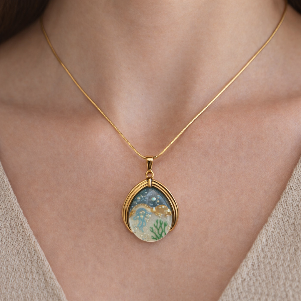 Artistic Ocean-Themed Pendant Design Unique resin artwork inspired by sea elements for a statement look